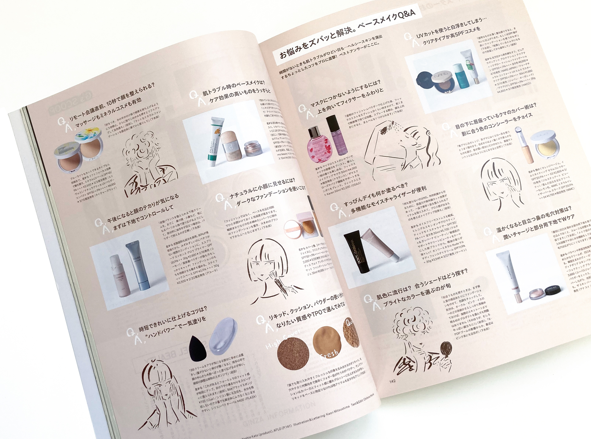 Spot illustrations and hand lettering for the featured article entitled ‘Spring Base Makeup for Creating Ideal Skin’.